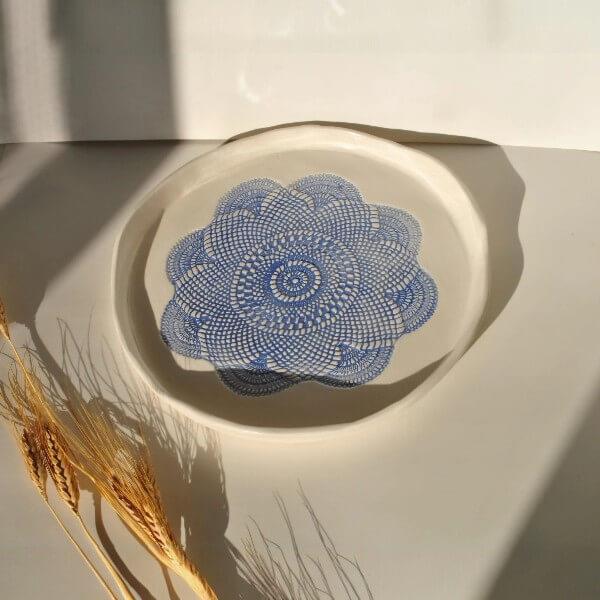 Ege mavisinin huzur veren tonlarıyla tasarlanan bu el yapımı seramik sunum tabağı, sofralarınıza zarif bir dokunuş katar. Her biri özenle şekillendirilmiş ve elde dekorlanmış olan bu ürün, sıcak ve soğuk gıda servisine uygundur. Uzun ömürlü kullanım için elde yıkanması tavsiye edilir. 26 cm çapındaki geniş formu sayesinde hem yemek sunumlarında hem de dekoratif obje olarak kullanım için idealdir. Modern ve rustik tarz mutfaklara uyum sağlayan bu seramik tabak, el emeği detaylarıyla sofralarınıza özgün bir şıklık kazandırır.
