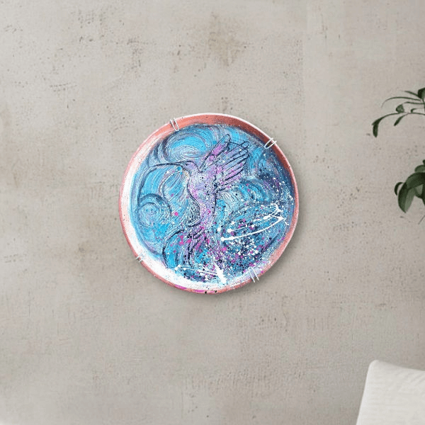 Sanatsal dokunuşlarla tasarlanmış seramik tasarım duvar tabağı, stilize hayvan motifleri ile özgün bir dekoratif parça sunar. Multiface boya ve sıvı cam tekniğiyle hazırlanmış bu el yapımı tabak, duvar dekorasyonu için idealdir. Gıda temasına uygun değildir, elde temizlik önerilir. Askı aparatı ile birlikte çerçevesiz olarak gönderilmektedir. Çap: 26 cm.