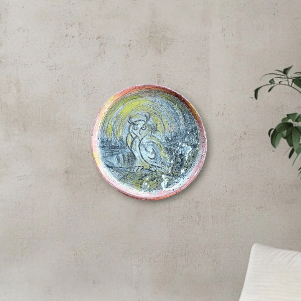 Sanatsal dokunuşlarla tasarlanmış seramik tasarım duvar tabağı, stilize hayvan motifleri ile özgün bir dekoratif parça sunar. Multiface boya ve sıvı cam tekniğiyle hazırlanmış bu el yapımı tabak, duvar dekorasyonu için idealdir. Gıda temasına uygun değildir, elde temizlik önerilir. Askı aparatı ile birlikte çerçevesiz olarak gönderilmektedir. Çap: 26 cm.