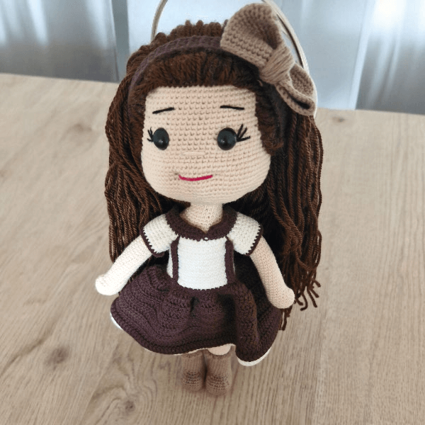 Sevgiyle örülmüş bu kahverengi elbiseli amigurumi bebek, pamuklu iplerle ve sağlığa uygun malzemelerle hazırlanmıştır. Dayanıklı ve uzun ömürlü yapısıyla çocukların güvenle oynayabileceği bir oyuncaktır. Yumuşak dokusu ve şık tasarımı sayesinde koleksiyonlarda sergilenmek veya özel günlerde hediye olarak sunmak için de harika bir seçimdir.